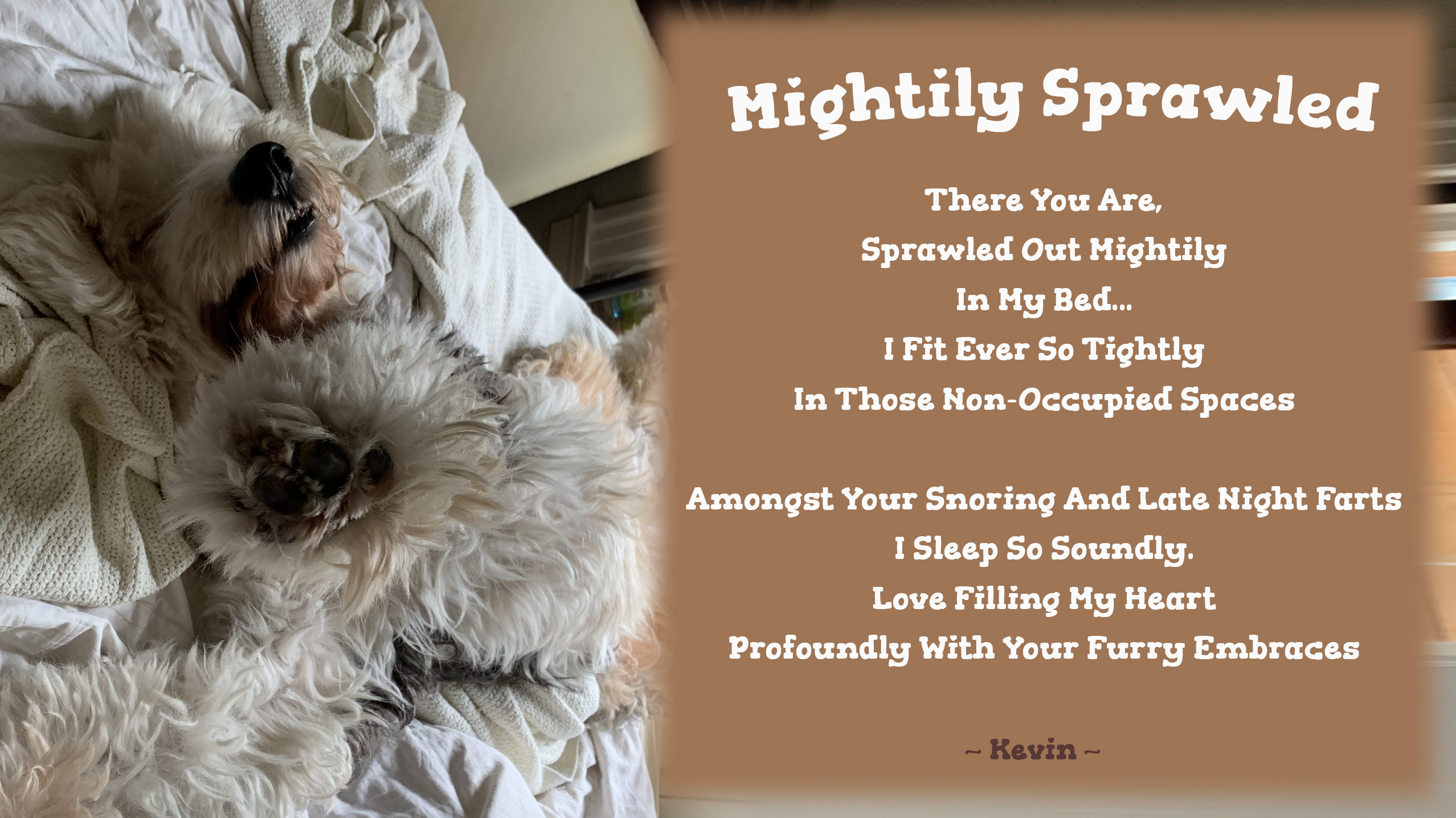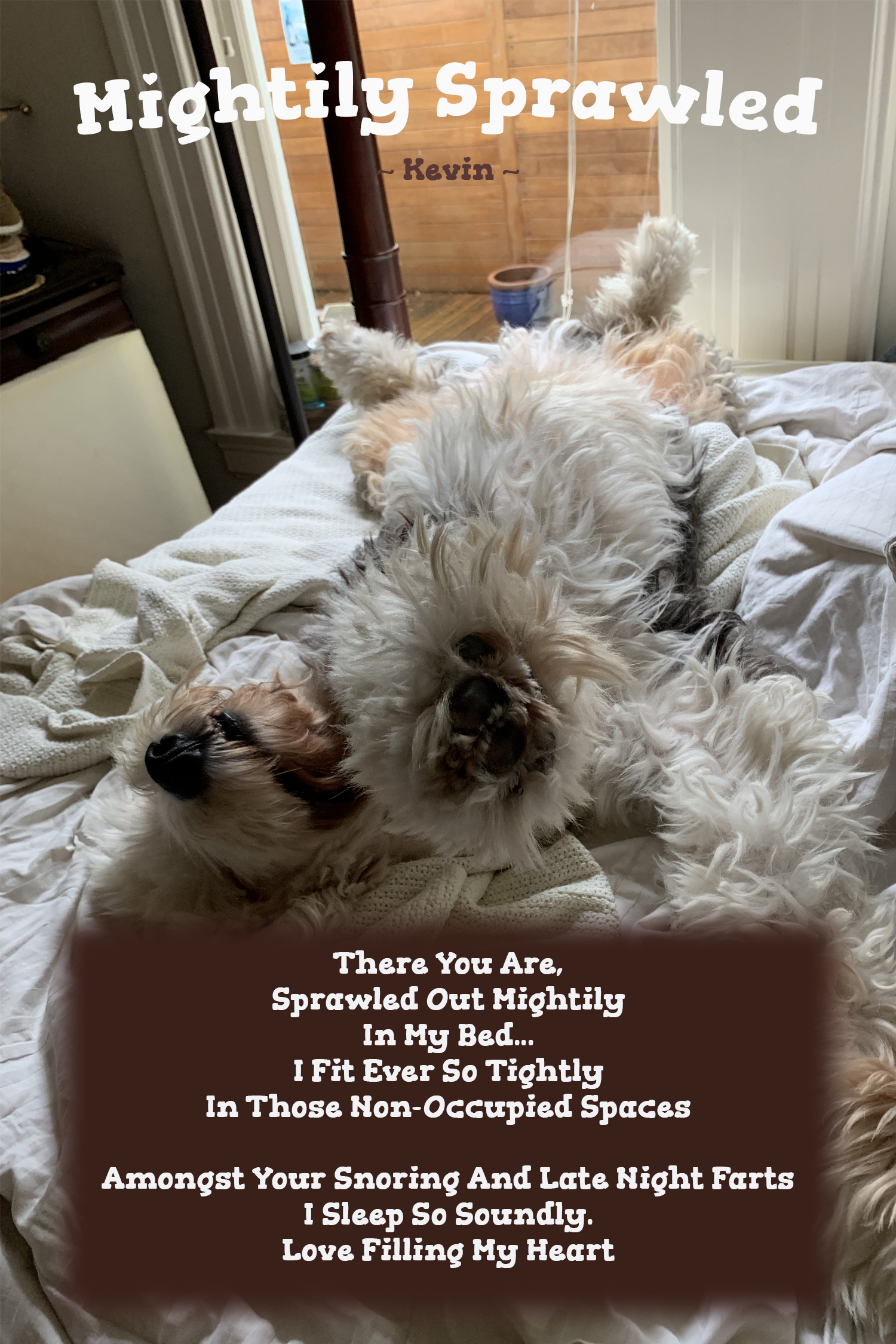 This morning as my gassy dog was snoring away, I sat thinking of just how grateful I am for Brody and his companionship. Even though he takes up most of the bed, I still find enough room to squeeze in there.