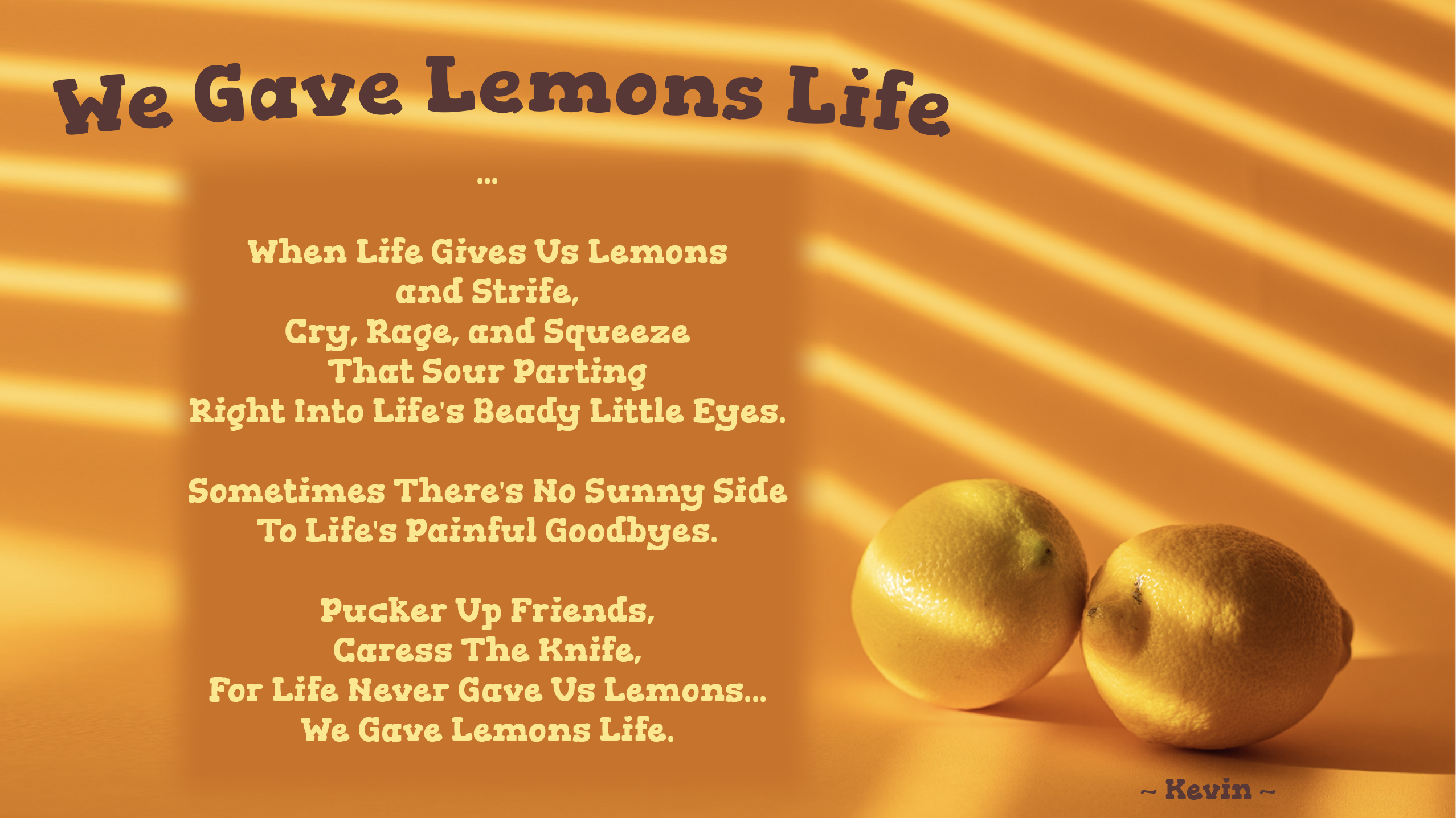 For Life Never Gave Us Lemons...