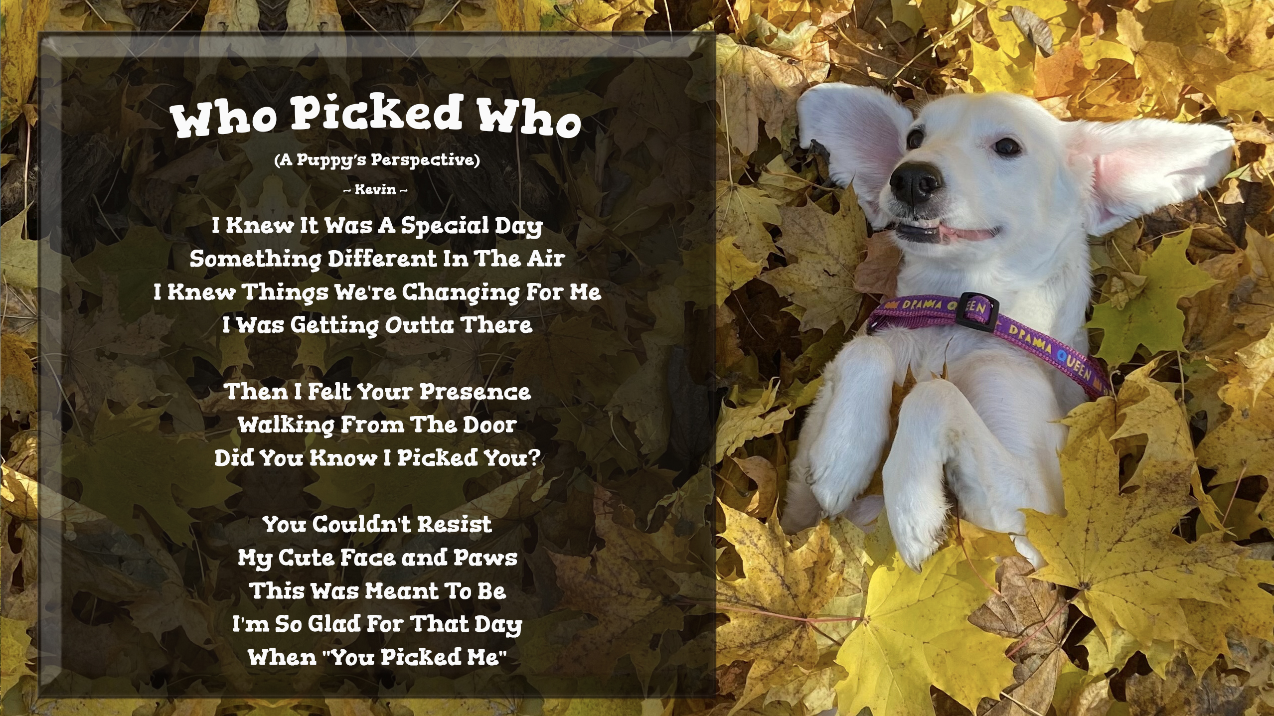 This is a fun question I like to ask. Who picked who? Some people answer that their pet was the one who decided it was time to get adopted. Others say that they made the decision based on this or that. This week, let's think all the way back to that moment and see if we can answer that question.